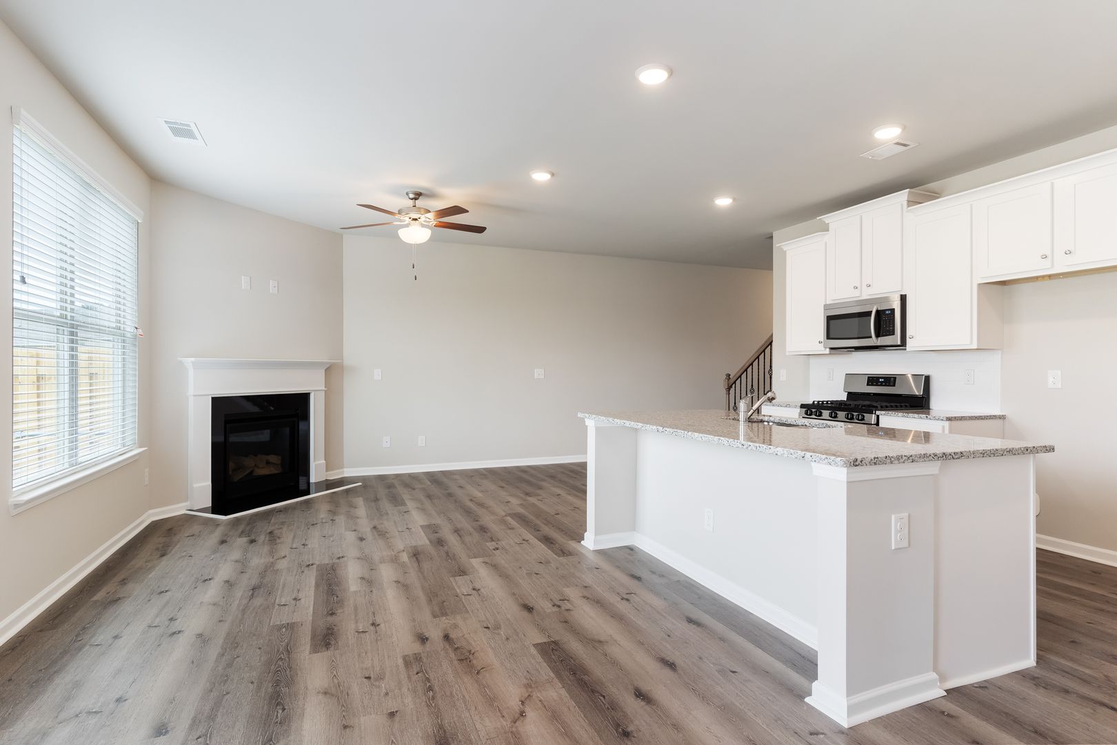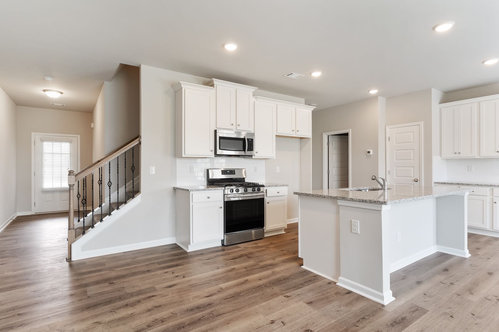 We have the Townhome for you in Oakwood! This beautiful townhome features 42" cabinets, granite countertops, stainless steel appliances, oversized walk-in closets, ceiling fans, 9' ceilings on first floor, 8' ceilings on second floor, laminate hardwoods on first floor, iron spindles and oak handrails, garages, front stone or brick siding, covered front porch, and so much more.