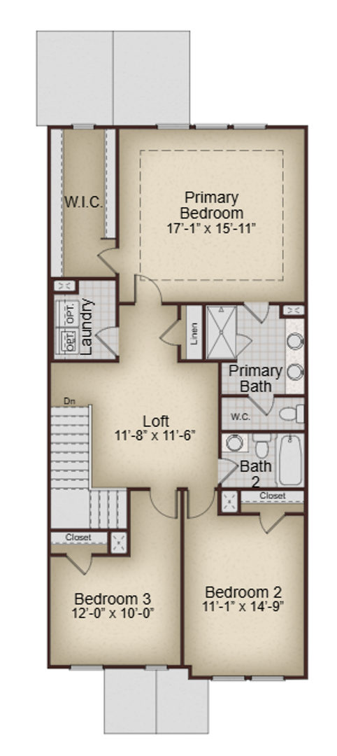 At The Collection Kinsley, revel in all the features of a new home with all the benefits of home ownership without the hassle. Each home is finished with wood-inspired flooring, granite countertops, stainless-steel appliances, and carpet on the stairway and throughout the upper level.