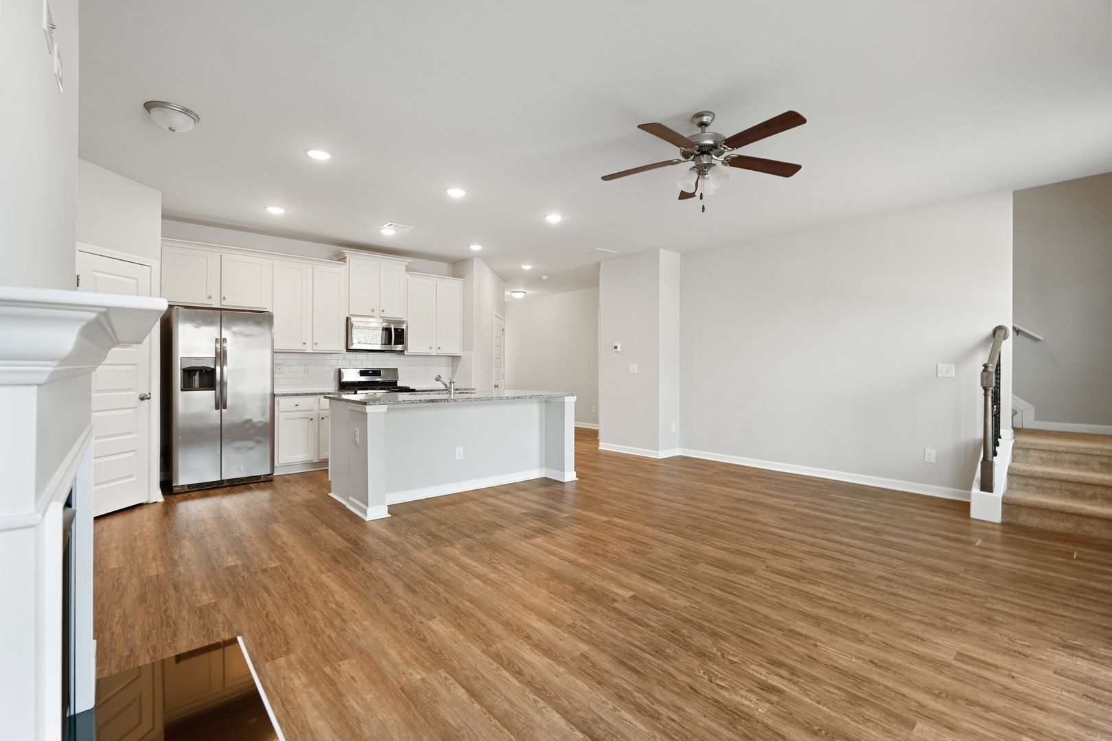 This beautiful townhome features 42" cabinets, granite countertops, stainless steel appliances, oversized walk-in closets, ceiling fans, 9' ceilings on first floor, 8' ceilings on second floor, laminate hardwoods on first floor, iron spindles and oak handrails, garages, front stone or brick siding, covered front porch, and so much more.